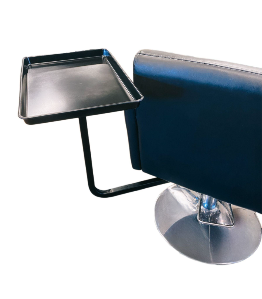 The Quick Tray is an innovative color tray that will attach quickly for use during a color application, and then, just as easily, it will detach for cutting/styling. The “Quick Tray” attaches to an arm below the stylist’s chair, which allows the tray to swivel almost completely around the entire perimeter of the chair. It will provide easy access to your color bowls/foils/etc. … no more reaching back & forth and no more stumbling around with a traditional tray on wheels.